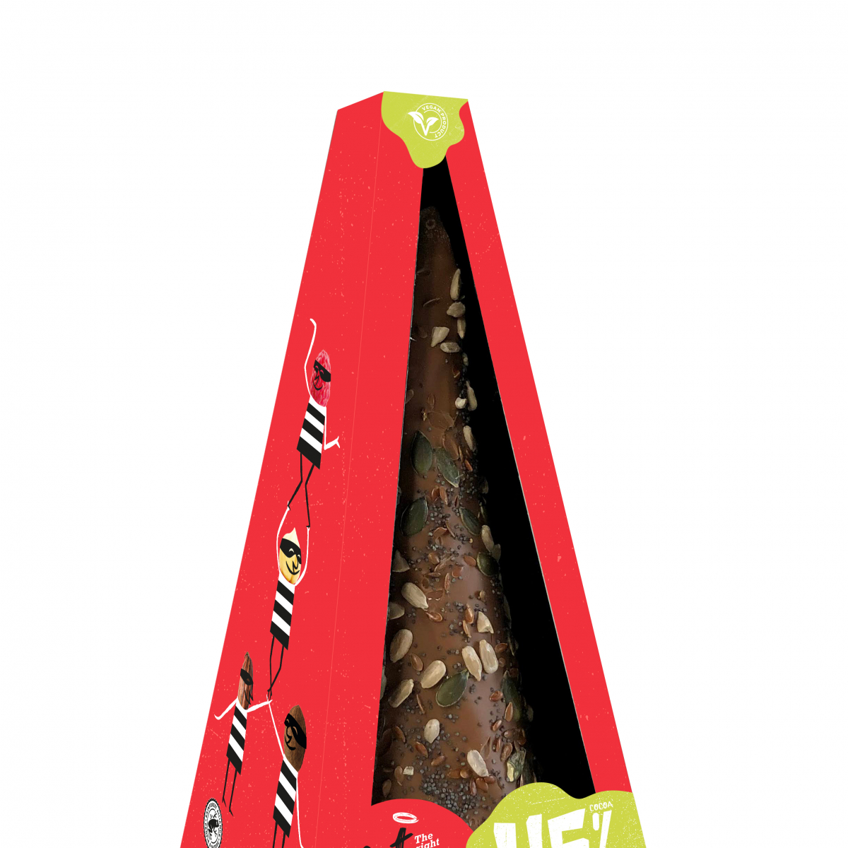 Chocolate vegan com pó de arroz (17%), framboesa (7%) e coco ralado (1%) |
